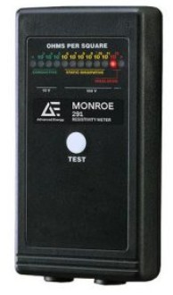 The MonroeTM 291 uses parallel metal contact rails and jacks for connections to external electrodes or ground to measure both resistivity and resistance-to-ground. The instrument is easy-to-use, pocket-sized, and uses a twelve LED color-coded display to accurately and quickly show measured decade values.